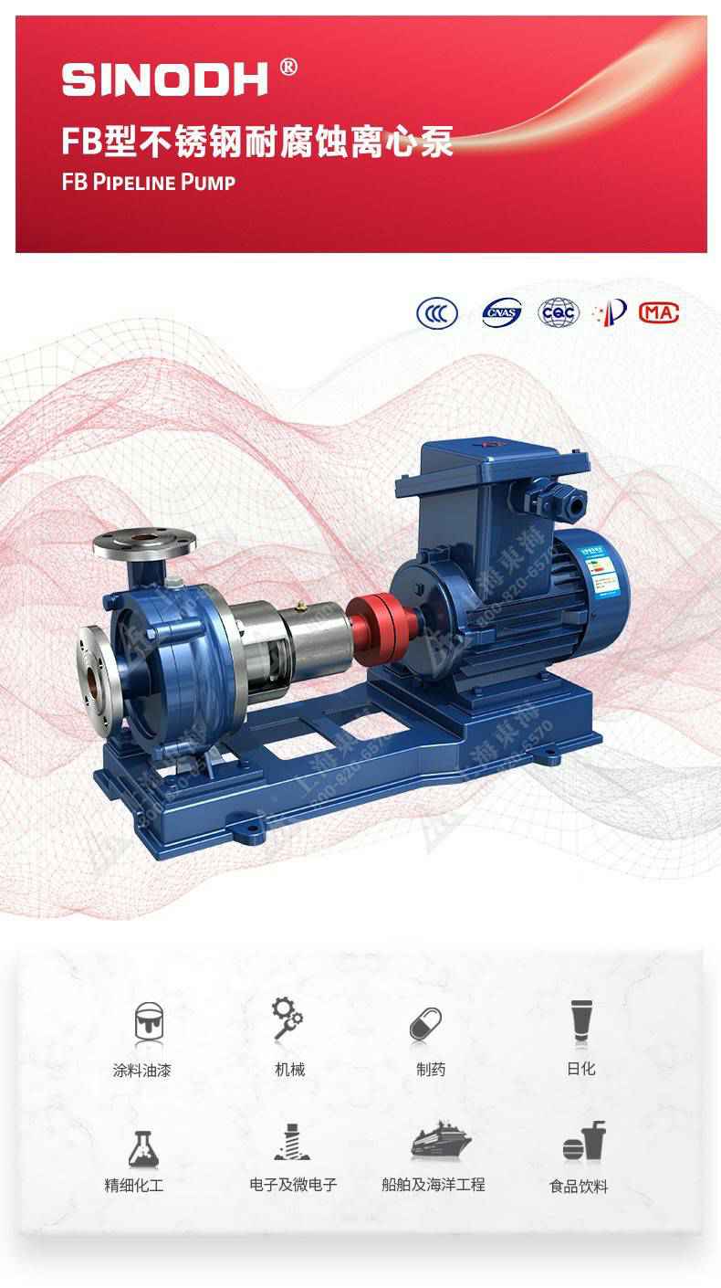 FB型不锈钢单级单吸悬臂式耐腐蚀离心泵,为时博·体育-时博(中国)一站式服务平台自主研发生产。本系列产品适用于输送不含固体颗粒,有腐蚀性液体。被输送介质温度为-20℃~200℃,泵的进口压力不能大于0.2MPa,广泛用于石油、化工、冶金、合成纤维、制药、食品、酿造等工业部门,也可供工矿、企业及城市供水、排水之用。