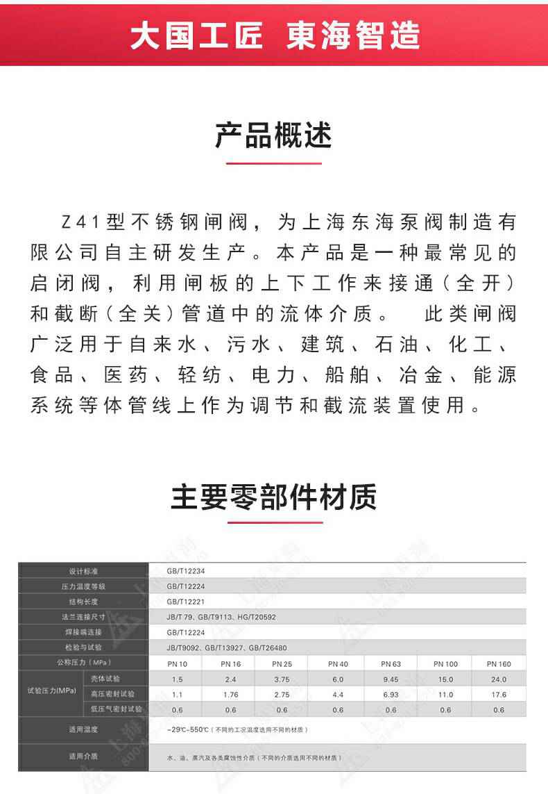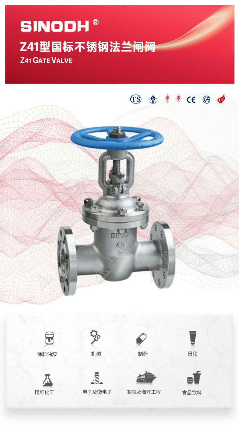Z41型不锈钢闸阀,为时博·体育-时博(中国)一站式服务平台自主研发生产。本产品是一种最常见的启闭阀,利用闸板的上下工作来接通(全开)和截断(全关)管道中的流体介质。此类闸阀广泛用于自来水、污水、建筑、石油、化工、食品、医药、轻纺、电力、船舶、冶金、能源系统等体管线上作为调节和截流装置使用。