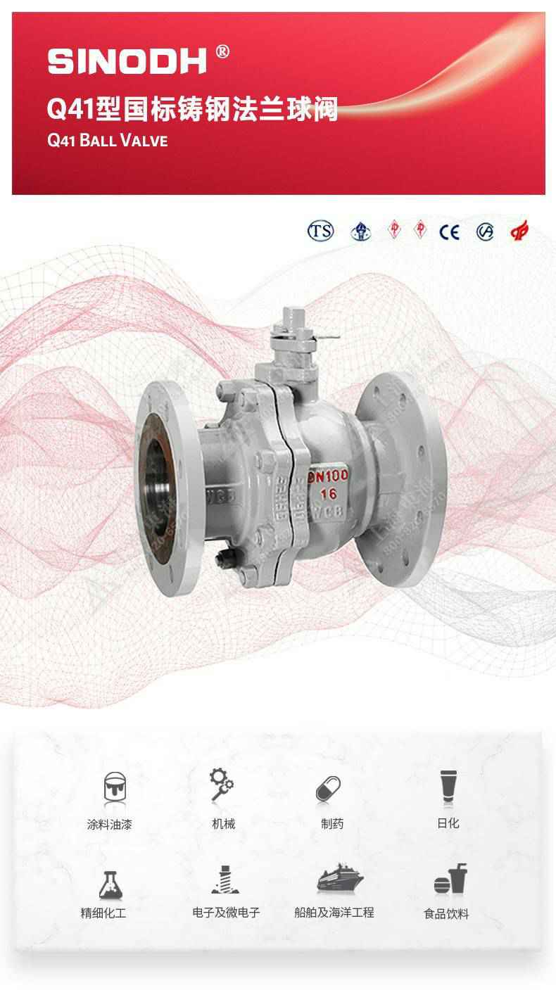 Q41型国标铸钢法兰球阀,为时博·体育-时博(中国)一站式服务平台自主研发生产。本产品设计制造标准符合GB/T12237、GB/T12224标准。该产品的球体在介质压力作用下球体能产生一定的位移并紧压在出口端的密封面上,保证出口端密封。适用于水、溶剂、酸和天然气等一般工业介质也适用于工况恶劣的介质,如氧气、过氧化氢、甲烷和乙烯等介质。